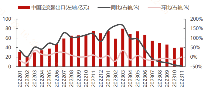 圖:我國(guó)逆變器出口金額(億元)(信息來(lái)源:民生證券)