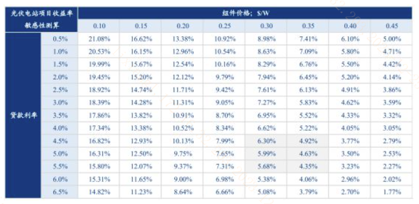 圖:光伏電站項(xiàng)目收益率敏感性測(cè)算表 (信息來(lái)源:華創(chuàng)證券)