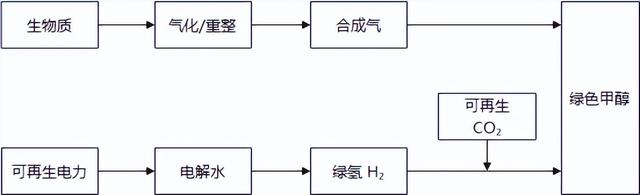 關(guān)于綠色甲醇的定義,目前全球沒有統(tǒng)一明確的說法。國際可再生能源署指出,綠色甲醇需要原料來源全部符合可再生能源標(biāo)準(zhǔn)。目前綠色甲醇主要有兩種生產(chǎn)途徑:一種是生物質(zhì)甲醇,利用生物基原料生產(chǎn);另一是綠電制甲醇。