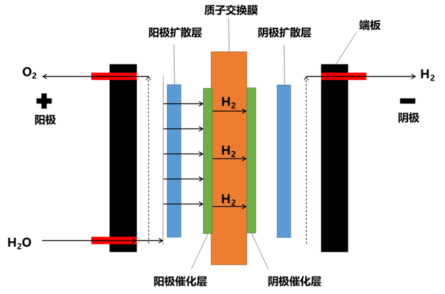質(zhì)子交換膜(Proton Exchange Membrane,PEM)電解水技術(shù)是指使用質(zhì)子交換膜作為固體電解質(zhì)替代了堿性電解槽使用的隔膜和液態(tài)電解質(zhì)(30%的氫氧化鉀溶液或26%氫氧化鈉溶液),并使用純水作為電解水制氫原料的制氫過程。