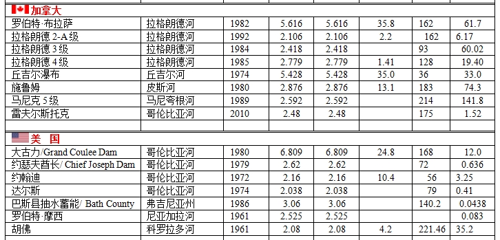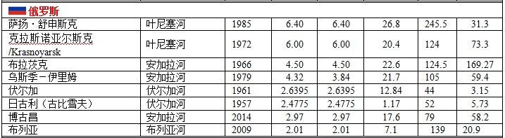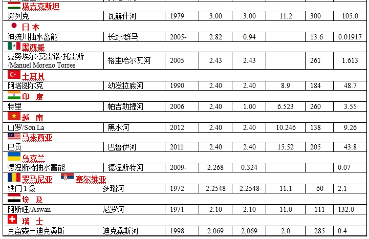 梯級(jí)水電站是世界上發(fā)展水力發(fā)電的一個(gè)重要的獲取電力的方式。在制作下表時(shí),我把相同一河流的水電站歸納在一起,您可以看出,世界上許多河流都是梯級(jí)水電站。