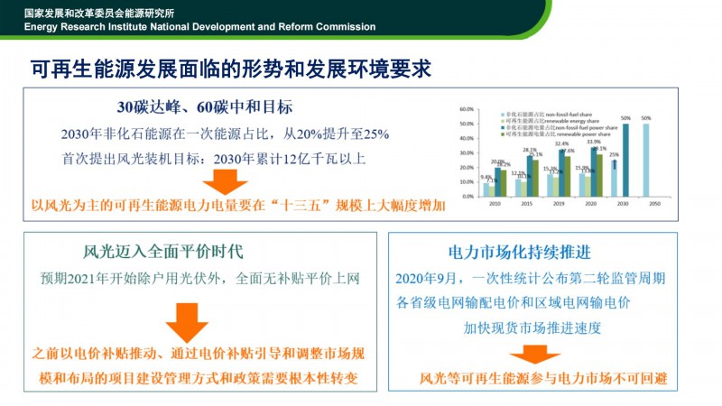 時璟麗老師在“2021光伏領(lǐng)袖大會”上的發(fā)言稿。時老師認為:可再生能源要在能源轉(zhuǎn)型中發(fā)揮重要作用。2050年,中國要建成高比例可再生能源電力系統(tǒng)。其中,非化石能源占比將達到91%,風(fēng)電、光伏占比將達到73%!未來可再生能源的發(fā)展,從資源、技術(shù)、產(chǎn)業(yè)、經(jīng)濟性角度,均不存在瓶頸與障礙!