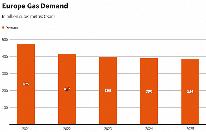 一些分析師表示,除了今年冬天天氣的不確定性之外,能源使用減少,其實是因為歐盟的工業(yè)生產(chǎn)正在永久性收縮。