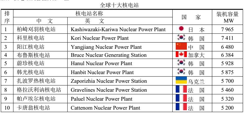 △ 世界上最大的核電站是日本柏崎刈羽核電站,裝機容量為7965MW,但2011年已經停工。值得注意的是韓國核電站進展很快,前十位核電站就占有3席,把美國和日本都摔到后面。另外值得注意的是中國陽江核電站躍居世界第三位。