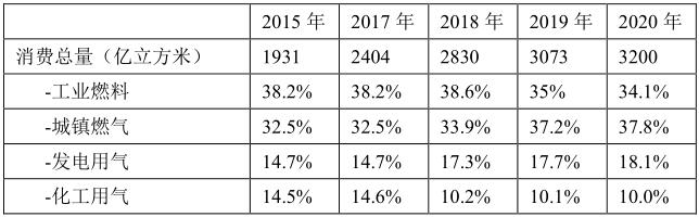 中國天然氣消費結(jié)構(gòu)
