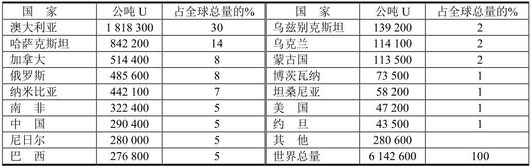 本數(shù)據(jù)是OECD NEA & IAEA于2017年發(fā)布的。此儲量包括可采儲量和推斷儲量。