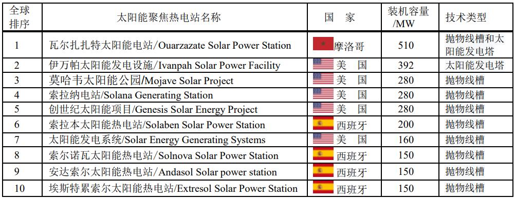 全球前十大太陽(yáng)能聚焦熱電站