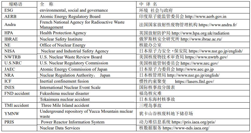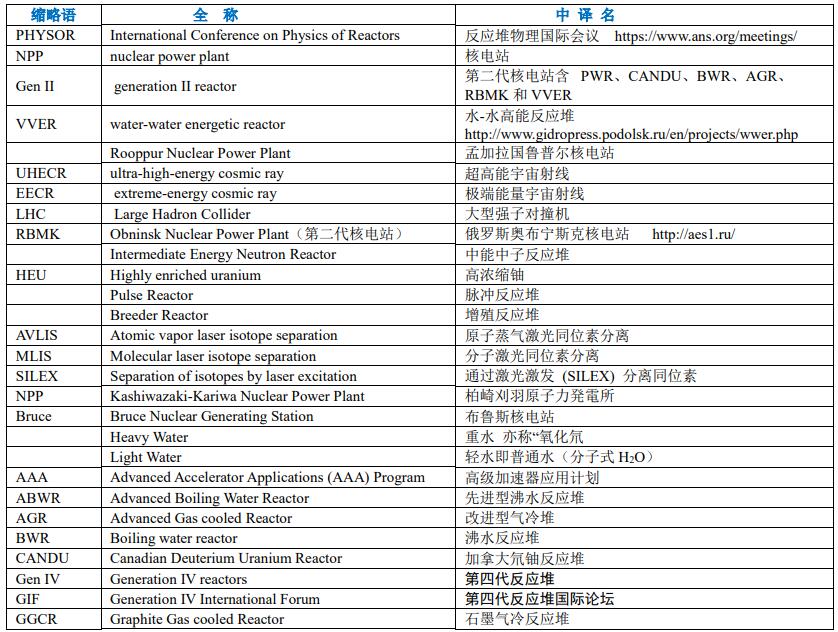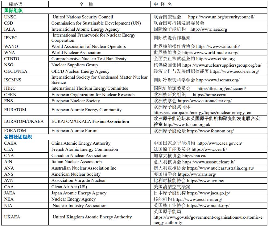 本“核能縮略語”,不是核能詞典。由下列六部分組成: