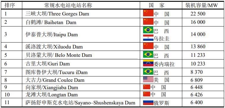 全球十大常規(guī)水電站電站排名,中國(guó)居首。原來(lái) 巴西和烏拉圭的伊泰普大壩(Itaipu Dam)居世界第二,但由于中國(guó)白鶴灘大壩(Baihetan)崛起,裝機(jī)容量達(dá)16000MW,其中運(yùn)行4000MW,在建12000MW,躍居世界第二。