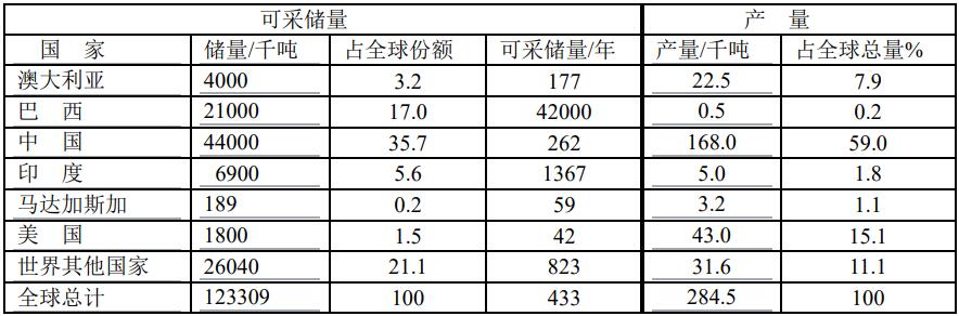 2021年底世界各國稀土金屬的可采儲量和產(chǎn)量