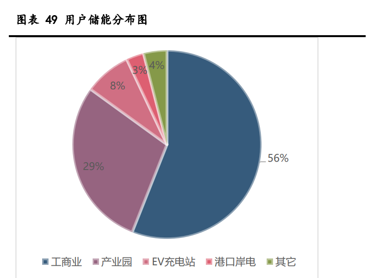 國內(nèi)用戶側(cè)儲能以工商業(yè)和產(chǎn)業(yè)園為主。2021 年國內(nèi)新型儲能中用戶側(cè)儲能占比 達(dá)到 24%,重要性愈發(fā)凸顯,細(xì)分應(yīng)用場景來看,國內(nèi)工商業(yè)和產(chǎn)業(yè)園占據(jù)了絕對主力, 合計占比超過 80%,是用戶側(cè)應(yīng)用的主流用途。