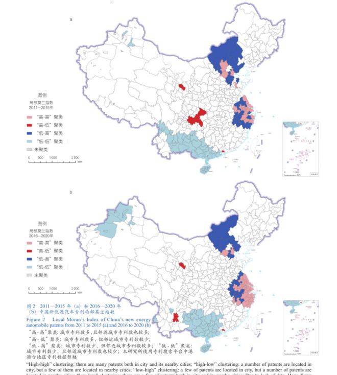 因此,由上述分析可知,新能源汽車企業(yè)是當(dāng)前中國(guó)進(jìn)行新能源汽車創(chuàng)新活動(dòng)的主體。但一方面中國(guó)新能源汽車產(chǎn)業(yè)發(fā)展仍處于初期,并未形成相對(duì)健全的產(chǎn)業(yè)體系;另一方面則是新能源汽車的研發(fā)有較高的技術(shù)門檻,企業(yè)間的合作難以開展。中國(guó)新能源汽車產(chǎn)業(yè)創(chuàng)新網(wǎng)絡(luò)的結(jié)網(wǎng)比例及其下降趨勢(shì)也表示,大部分新能源汽車的研發(fā)基本由企業(yè)獨(dú)立完成。這使得中國(guó)新能源汽車在2011—2020年并未產(chǎn)生顯著的溢出效應(yīng),僅在長(zhǎng)江三角洲城市群地區(qū)有一定的創(chuàng)新活動(dòng)的集聚現(xiàn)象。