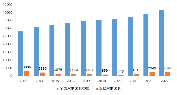 圖11 2013—2022年水電裝機和新增裝機情況(單位:萬千瓦)