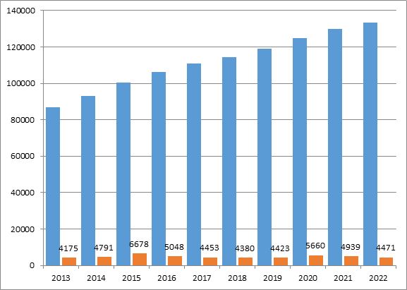 圖8 2013—2022年火電裝機和新增裝機情況(單位:萬千瓦)