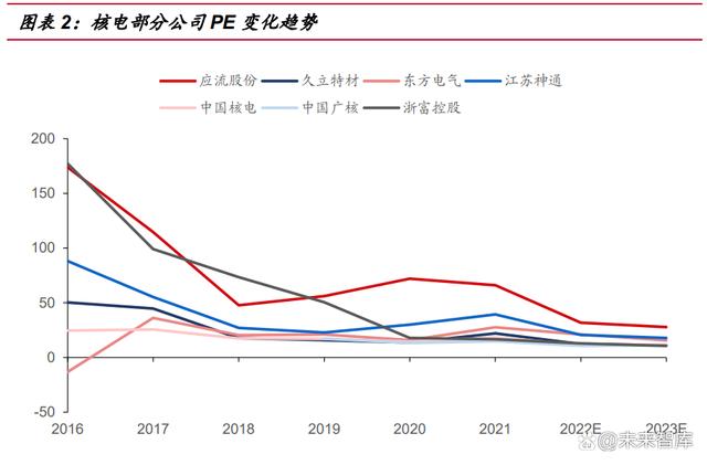 人和:目前核電板塊各公司基金持倉仍處于底部,公司估值也處于歷史低點。 我們選取核電板塊部分公司觀察基金持倉比例,發(fā)現(xiàn)經過 2019 年之后的集 體上升后,2021 年至今呈現(xiàn)下降趨勢,當前處于歷史低點。從核電板塊公 司估值角度,近年來一直處于緩慢下降狀態(tài),目前正處于歷史低點。我們認 為在上述“天時地利人和”因素加持下,核電板塊有較大向上空間。