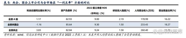 《方案》也要求深化解決部分中央企業(yè)內(nèi)部上市平臺(tái)定位不清、分布散亂、實(shí)力較弱的具體問題,并提出了相應(yīng)的量化要求。而《方案》的改革重點(diǎn)由全部國(guó)企轉(zhuǎn)變?yōu)檠肫蠊?,我?認(rèn)為這是基于央企控股上市公司的屬性。相對(duì)于國(guó)企上市公司,央企控股的背景意味著公司 的實(shí)際控制人為國(guó)資委,易于統(tǒng)一管理和直接考核,由此進(jìn)行下一步改革的力度深度或?qū)⒏?強(qiáng)。在引入積極股東環(huán)節(jié),完善企業(yè)治理結(jié)構(gòu),進(jìn)行企業(yè)制度創(chuàng)新等方面成效或更顯著。 近年來,為推動(dòng)中央企業(yè)加快實(shí)現(xiàn)高質(zhì)量發(fā)展,國(guó)資委探索建立了中央企業(yè)經(jīng)營(yíng)指標(biāo)體系。 2020 年,首次形成“兩利三率”指標(biāo)體系,包括凈利潤(rùn)、利潤(rùn)總額、營(yíng)業(yè)收入利潤(rùn)率、資產(chǎn)負(fù) 債率和研發(fā)經(jīng)費(fèi)投入強(qiáng)度。2021 年,為引導(dǎo)中央企業(yè)提高生產(chǎn)效率,增加了全員勞動(dòng)生產(chǎn) 率指標(biāo),完善為“兩利四率”。2022 年,針對(duì)“兩利四率”指標(biāo),進(jìn)一步提出“兩增(利潤(rùn)總額和 凈利潤(rùn)增速高于國(guó)民經(jīng)濟(jì)增速)一控(控制好資產(chǎn)負(fù)債率)三提高(營(yíng)業(yè)收入利潤(rùn)率、全員 勞動(dòng)生產(chǎn)率、研發(fā)經(jīng)費(fèi)投入進(jìn)一步提高)”的總體要求。2023 年的中央企業(yè)負(fù)責(zé)人會(huì)議上, 國(guó)資委在總結(jié)近幾年工作成效基礎(chǔ)上,對(duì)中央企業(yè)經(jīng)營(yíng)指標(biāo)體系進(jìn)行了優(yōu)化調(diào)整,將“兩利 四率”調(diào)整為“一利五率”。 “一增”即確保利潤(rùn)總額增速高于全國(guó) GDP 增速;“一穩(wěn)”即企 業(yè)資產(chǎn)負(fù)債率總體保持穩(wěn)定;“四提升”即凈資產(chǎn)收益率、研發(fā)經(jīng)費(fèi)投入強(qiáng)度、全員勞動(dòng)生產(chǎn)率、營(yíng)業(yè)現(xiàn)金比率 4個(gè)指標(biāo)進(jìn)一步提升。