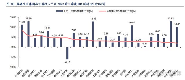 集團與下屬核心平臺在 ROA 方面較接近的有:三峽能源(三峽集團),中國廣核(中廣核 集團),國電電力(國家能源集團),中煤能源(中煤集團),華電國際(華電集團)。