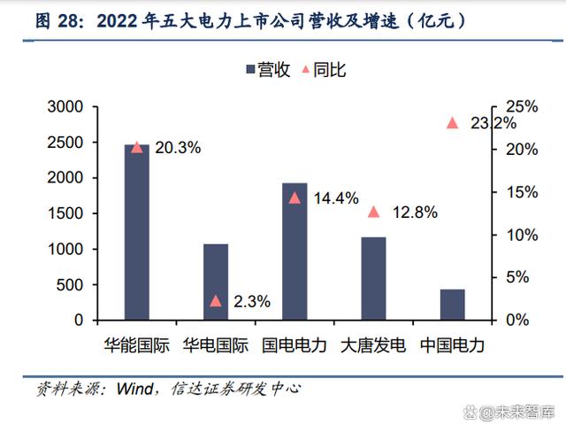2022 年主要受益于電價(jià)上漲,我國(guó)五大電力上市公司的營(yíng)業(yè)收入均實(shí)現(xiàn)穩(wěn)步增長(zhǎng)。其中, 華能國(guó)際實(shí)現(xiàn)營(yíng)收 2467.3 億元,同比增長(zhǎng) 20.3%;國(guó)電電力實(shí)現(xiàn)營(yíng)收 1926.8 億元,同比 增長(zhǎng) 14.4%;大唐發(fā)電實(shí)現(xiàn)營(yíng)收 1168.3 億元,同比增長(zhǎng) 12.8%;中國(guó)電力規(guī)模較小,營(yíng)收 增速最快,2022 年實(shí)現(xiàn)營(yíng)收 436.9 億元,同比增長(zhǎng) 23.2%。 2022 年五大電盈虧分化明顯,歸母凈利潤(rùn)均實(shí)現(xiàn)向上修復(fù)。2022 年國(guó)電電力(火電資產(chǎn) 優(yōu)質(zhì),長(zhǎng)協(xié)煤基本全覆蓋)、中國(guó)電力(火電資產(chǎn)優(yōu)質(zhì),大力提升新能源裝機(jī)占比)分別 實(shí)現(xiàn)歸母凈利潤(rùn) 27.47 億元、26.85 億元,同比增幅分別達(dá)到 239.6%、297.1%;華電國(guó)際 小幅盈利,實(shí)現(xiàn)歸母凈利潤(rùn) 0.998 億元,同比增長(zhǎng) 102.2%;大唐發(fā)電小幅虧損,歸母凈利 潤(rùn)為-8.71 億元,同比減虧 110.25 億元;華能國(guó)際虧損達(dá) 100.85 億元,同比實(shí)現(xiàn)減虧 25.88 億元。