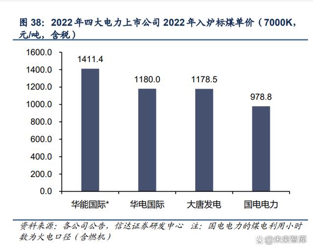 2022 年四大電力公司中,長(zhǎng)協(xié)煤比例較低的華能國(guó)際入爐標(biāo)煤?jiǎn)蝺r(jià)最高,達(dá) 1411.4 元/噸 (含燃機(jī)),長(zhǎng)協(xié)煤基本全覆蓋的國(guó)電電力入爐標(biāo)煤?jiǎn)蝺r(jià)最低,為 978.8 元/噸。煤價(jià)繼續(xù) 上漲,加之長(zhǎng)協(xié)簽約率、履約率都有待提升,火電企業(yè)的成本端煤價(jià)壓力較明顯。2023 年 隨著長(zhǎng)協(xié)兌現(xiàn)率的提升,以及成本端進(jìn)口煤價(jià)同比回落、現(xiàn)貨煤價(jià)中樞回落,各大電力公 司業(yè)績(jī)有望實(shí)現(xiàn)明顯的改善。 五大電供電煤耗總體呈下降趨勢(shì),發(fā)電效率持續(xù)提升。2022 年五大電供電煤耗平均值為 292.61 克/千瓦時(shí)(同比-0.7 克/千瓦時(shí)),較 2019 年下降 7.3 克/千瓦時(shí)。2022 年供電煤 耗最低的為華電國(guó)際,供電煤耗 287.11 克/千瓦時(shí)(同比-0.44 克/千瓦時(shí)),降幅最大的為 華電國(guó)際,為 287.69 克/千瓦時(shí)(同比-3 克/千瓦時(shí))。