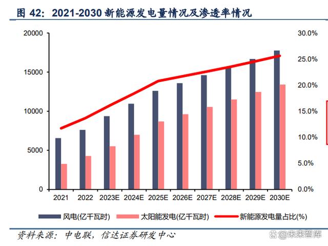 風光電量仍將保持高增速增長,滲透率有望年內(nèi)突破 15%。2023 年 4 月 6 日,國家能源局 發(fā)布《2023 年能源工作指導意見》,提出“非化石能源發(fā)電裝機占比提高到 51.9%左右, 風電、光伏發(fā)電量占全社會用電量的比重達到 15.3%。”的目標。我們假設(shè) 2023 年年內(nèi)新 增風電和光伏并網(wǎng)裝機可達18000萬千瓦左右,根據(jù)測算(基準情景下),風電與光伏發(fā)電 量之和的占比可提升至 16.1%。 風光持續(xù)快速滲透,消納壓力或?qū)@現(xiàn)。我們認為,高比例新能源接入下的電網(wǎng)將面臨系 統(tǒng)性成本快速抬升的問題,輔助服務(wù)費用或?qū)⒊霈F(xiàn)指數(shù)式的上升。以國內(nèi)情況為例,2019 年全國新能源電量占比為 7%,國家能源局公布全國輔助服務(wù)費用占全社會電費比例為 1.47%;而根據(jù)山西電力現(xiàn)貨市場的經(jīng)驗,在 2022年新能源電量占比達到 16%時,其輔助 服務(wù)電費占全社會電費比例為5%左右。因此,在新能源滲透率翻一番時,輔助服務(wù)費用即 系統(tǒng)調(diào)節(jié)成本出現(xiàn)了接近翻兩番的情況,呈指數(shù)性抬升。