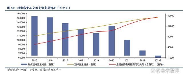頂峰裝機容量裕度或?qū)⑹锥染o缺,電力供需矛盾年內(nèi)或?qū)⒃俣燃せ?023 年可投產(chǎn)火電裝 機為 2021 年左右開工建設(shè)項目,我們預(yù)計投產(chǎn)規(guī)模約為 4000 萬千瓦;水電核電可投產(chǎn)裝 機為“十三五”中期開工建設(shè)項目,預(yù)計合計投產(chǎn)規(guī)模為 1000萬千瓦。據(jù)我們計算,2023年 內(nèi)頂峰容量約為 15.1 億千瓦,將首度少于全國用電尖峰負荷(含備用)。2023 年 1 月 19 日,中電聯(lián)發(fā)布《2023 年度全國電力供需形勢分析預(yù)測報告》,預(yù)計 2023 年全國電力供需總體緊平衡,部分區(qū)域用電高峰時段電力供需偏緊。迎峰度夏期間,華東、華中、南方區(qū) 域電力供需形勢偏緊;華北、東北、西北區(qū)域電力供需基本平衡。迎峰度冬期間,華東、 華中、南方、西北區(qū)域電力供需偏緊;華北區(qū)域電力供需緊平衡;東北區(qū)域電力供需基本 平衡。