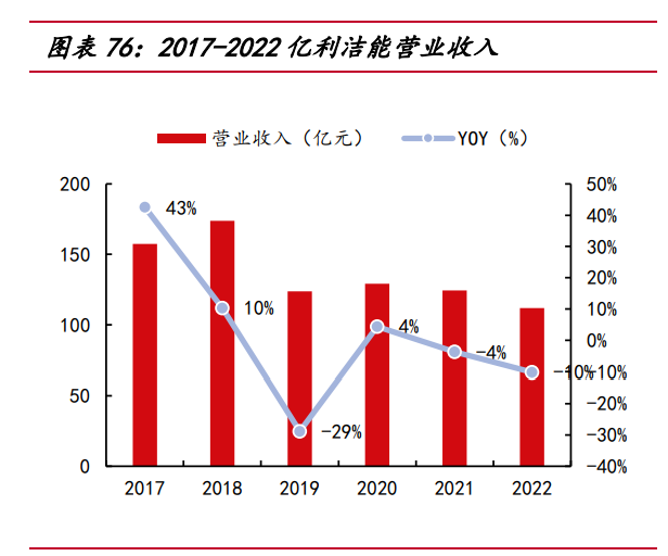 公司目前主營業(yè)務為 1)現(xiàn)代煤化工,包括生產(chǎn) PVC、燒堿、乙二醇、甲醇、合 成氨、復混肥等產(chǎn)品及供應鏈業(yè)務;2)清潔熱力,包括城市、工業(yè)污泥燃燒供熱, 天然氣、生物質(zhì)、分布式能源供熱;3)在沙漠、戈壁、荒漠地區(qū)發(fā)展立體生態(tài)光伏 治沙。 公司 2022 年實現(xiàn)主營收入 111.78 億元,同比-10%;歸母凈利潤 7.31 億元,同 比-9%,主要系公司供應鏈物流業(yè)務調(diào)整優(yōu)化及傳統(tǒng)化工產(chǎn)品市場價格下跌帶動收入、 利潤下降。 現(xiàn)代煤化工、清潔熱力業(yè)績持續(xù)夯實。公司煤化工產(chǎn)品產(chǎn)能位居行業(yè)前列,2022 年公司達拉特園區(qū)實現(xiàn)電石生產(chǎn) 74.85 萬噸,PVC 產(chǎn)量 51.33 萬噸、燒堿產(chǎn)量 36.64 萬噸,生產(chǎn)穩(wěn)定運行,滿產(chǎn)滿銷;庫布其園區(qū)生產(chǎn)復混肥 66.69 萬噸、乙二醇 27.99 萬噸,經(jīng)營業(yè)績有效提升;熱力業(yè)務方面,2022 年公司熱力板塊實現(xiàn)營業(yè)收入 19.08 億元,同比增長 12.33%。