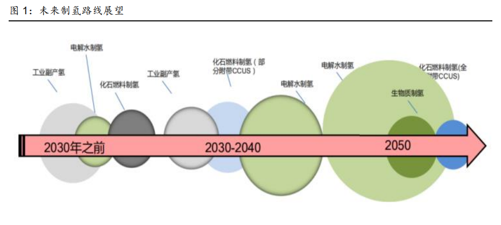 發(fā)展氫能是達到全球“雙碳”目標的重要途徑。氫能是一種來源豐富、綠色低碳、應用廣 泛的二次能源,能幫助可再生能源大規(guī)模消納,實現電網大規(guī)模調峰和跨季節(jié)、跨地域儲 能,加快推進工業(yè)、建筑、交通等領域的低碳化。目前全球氫能發(fā)展如火如荼,中國國家 發(fā)改委、國家能源局聯合印發(fā)了《氫能產業(yè)發(fā)展中長期規(guī)劃(2021-2035 年)》確定了氫 能是未來國家能源體系的重要組成部分,海外對綠氫的重視程度也越來越高,2020 年歐 盟發(fā)布了《歐盟氫能戰(zhàn)略》,旨在推動氫能在工業(yè)、交通、發(fā)電等全領域應用;同年美國發(fā) 布《氫能計劃發(fā)展規(guī)劃》,指定多項關鍵技術經濟指標,期望成為氫能產業(yè)鏈中的市場領導 者。我們認為氫能的開發(fā)和利用有望引發(fā)深刻的能源革命,必須重視氫能行業(yè)的發(fā)展和投 資機會。