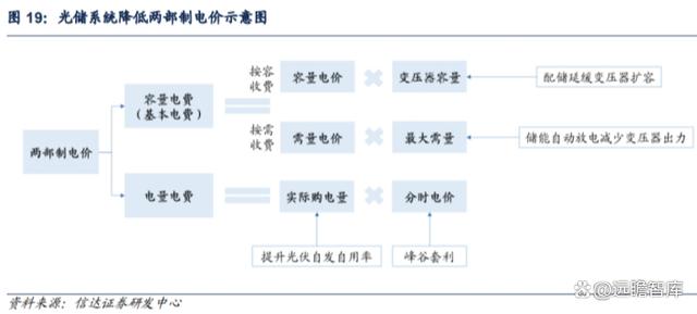 4)擴大兩部制電價工商業(yè)范圍,增加需量管理需求。第三輪輸配電價改革擴大了兩部制電價執(zhí)行范圍,對于用電容量在 100-315kVA 的工商業(yè)用戶,可選擇執(zhí)行兩部制電價;用電容量在 315kVA 及以上的工商業(yè)用戶,執(zhí)行兩部制電價,現(xiàn)執(zhí)行單一制電價的用戶可選擇執(zhí)行單一制電價或兩部制電價。容量電費(基本電費)按用戶變壓器容量(按容收費)或運行的最大需要量(按需收費)計算,電量電費按用戶實際購電量計算。工商業(yè)用戶因此增加精細化管理電費的需求,比如安裝光儲系統(tǒng)可以同時降低容量電費與電量電費,節(jié)省用電支出。精細化管理需要布局能量管理系統(tǒng),也為虛擬電廠的建設奠定基礎。