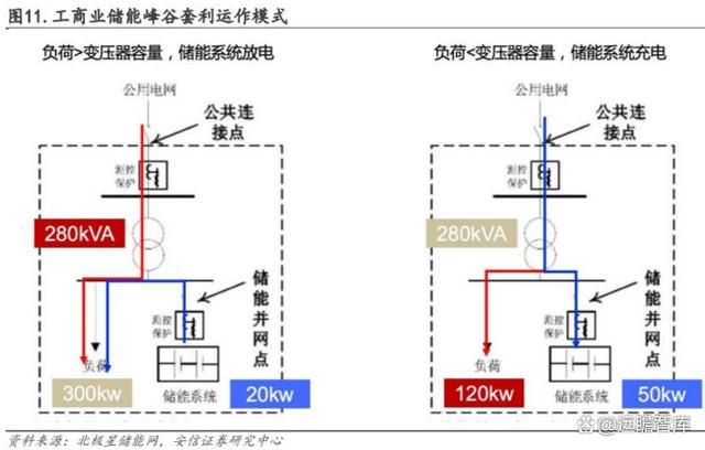 安裝儲(chǔ)能可以通過峰谷價(jià)差套利來節(jié)約電量電費(fèi)。儲(chǔ)能系統(tǒng)在用電低谷時(shí)利用低電價(jià)充電,在負(fù)荷高峰時(shí),由儲(chǔ)能電池向負(fù)荷供電,實(shí)現(xiàn)峰值負(fù)荷的轉(zhuǎn)移,從峰谷電價(jià)中獲取收益。