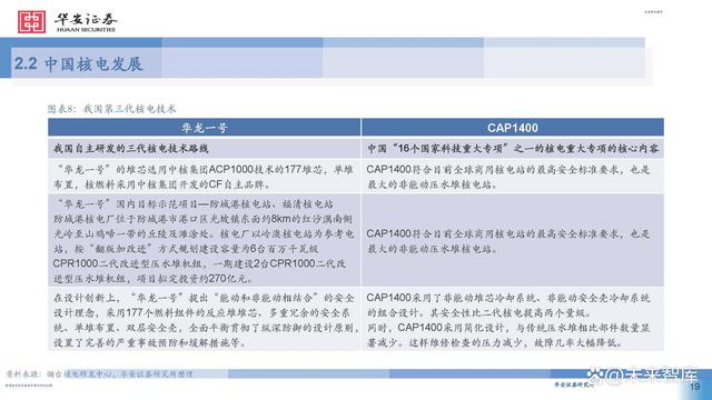 通過對(duì)國(guó)際先進(jìn)堆型的引進(jìn)和消化吸收,應(yīng)運(yùn)而生的自 主技術(shù)“華龍一號(hào)”國(guó)內(nèi)外首堆也相繼商運(yùn),標(biāo)志著我 國(guó)真正自主掌握了三代核電技術(shù),由核電大國(guó)進(jìn)入核電 強(qiáng)國(guó)。同時(shí),借鑒AP1000技術(shù)理念的自主三代核電技術(shù) “國(guó)和一號(hào)”示范工程有序開建,全球首座具有第四代 核電技術(shù)主要特征的高溫氣冷堆核電站示范工程實(shí)現(xiàn)成 功并網(wǎng)發(fā)電,全球首個(gè)陸上商用模塊化小堆“玲龍一號(hào)” 開建,標(biāo)志著我國(guó)核電水平躋身世界前列。