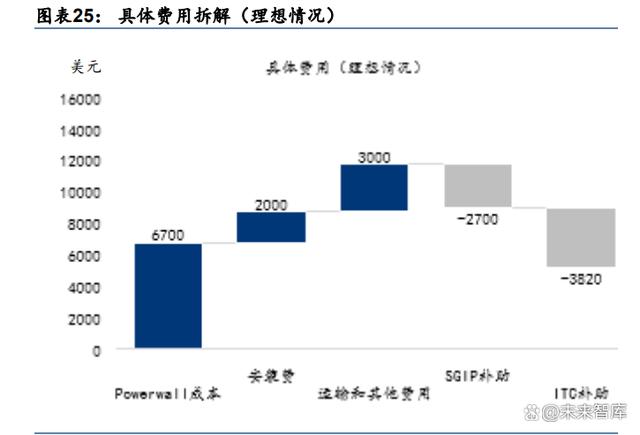 NEM 3.0:平均電力回購價格預(yù)計下降 75%,補貼下降反提升戶儲安裝經(jīng)濟性。據(jù)加州太 陽能和儲能公司(CALSSA)協(xié)會報道,NEM 3.0 協(xié)議將導(dǎo)致加州的平均太陽能電力回購 價格從度電 0.30 美元下調(diào)至 0.08 美元,相當(dāng)于 75%的下降。在此基礎(chǔ)上,根據(jù) Energysage 和 NEM 3.0 提案的預(yù)測,在 NEM 3.0 政策下僅購買戶用光伏設(shè)備的回本周期將由原來的 5-6 年延長到 9 年左右。NEM 3.0 對于家庭用光伏的支持力度大大削減,而儲能的經(jīng)濟性得 以體現(xiàn)。由于基礎(chǔ)電價隨著一天中時間不同而變化,安裝戶儲意味著用戶可以在回購電價 低的時候儲存多余的電量,在電價高的時候向電網(wǎng)回輸電力,波動性增加帶來經(jīng)濟性提升。 據(jù) NEM 3.0提案預(yù)測,安裝戶儲的回本周期最低可達 6.98年,低于僅安裝光伏的回本周期, 配儲經(jīng)濟性體現(xiàn),我們預(yù)計 2023 年 4 月后安裝的戶用光伏配儲比例將得到較大幅度提升。
