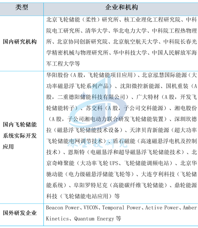 表3 飛輪儲能系統(tǒng)和裝置開發(fā)應用重點機構(gòu)