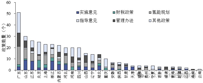 圖3 中國各省市氫能產(chǎn)業(yè)各領(lǐng)域政策分布資料來源:根據(jù)氫能產(chǎn)業(yè)大數(shù)據(jù)平臺檢索所得(檢索時間2023年9月14)。