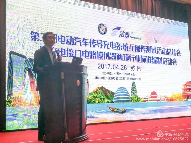 2017年4月26日,第二期電動汽車傳導(dǎo)充電系統(tǒng)互操作性測試活動總結(jié)會在蘇州召開,本次會議由中國電力企業(yè)聯(lián)合會標準化管理中心、能源行業(yè)電動汽車充電設(shè)施標準化技術(shù)委員會充電檢測認證標準工作組、中國電動汽車充電基礎(chǔ)設(shè)施促進聯(lián)盟標準實施促進專業(yè)委員會聯(lián)合主辦,來自全國電動汽車行業(yè)、充電設(shè)施行業(yè)、電動汽車及充電設(shè)施檢測機構(gòu)及相關(guān)企業(yè)代表共150多人參加了會議。