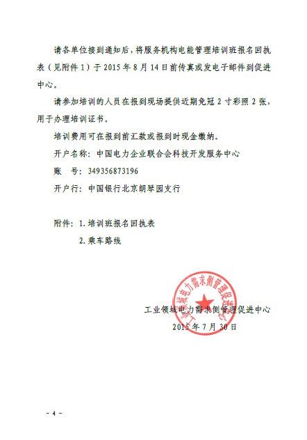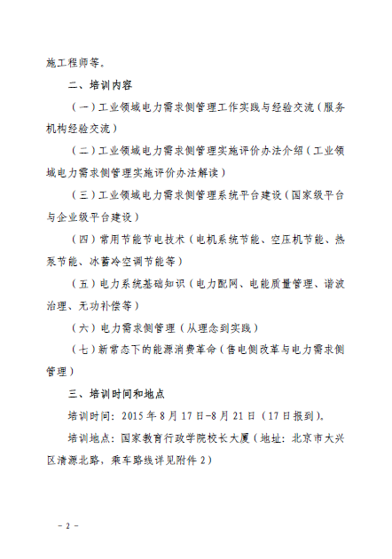 1、關(guān)于舉辦工業(yè)領(lǐng)域電力需求側(cè)管理服務(wù)機構(gòu)電能管理培訓(xùn)班通知(工電促[2015]8號)