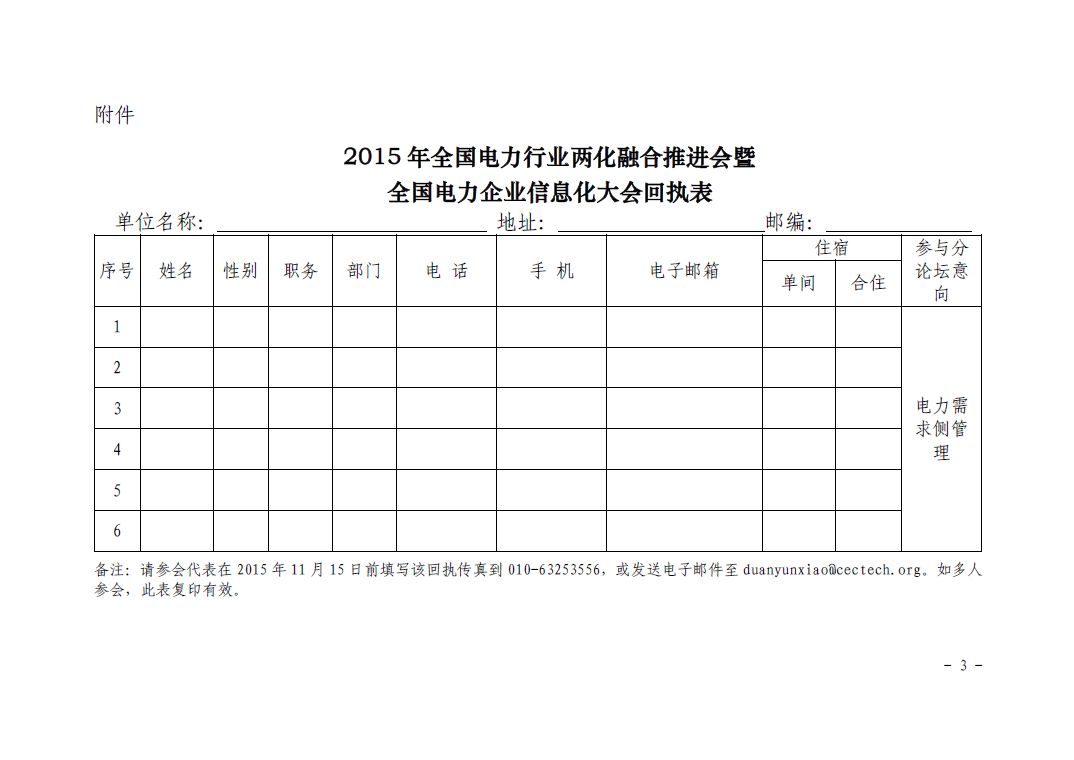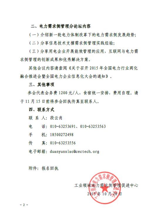 2.關(guān)于組織參加2015年全國(guó)電力企業(yè)信息化大會(huì)電力需求側(cè)管理分論壇的通知(工電促[2015]10號(hào))